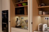 Te noteren : extra werkzone, toestellen achter inschuifbare deuren, soberheid.